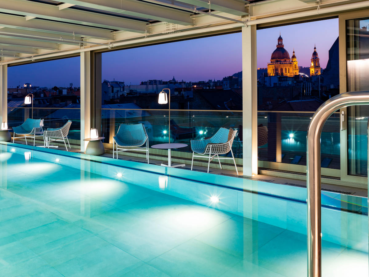 Get the most out of Budapest! Cortile Budapest Hotel puts you right into the heart of the city. This adults only boutique hotel is the perfect choice for a tranquil urban escape. Feel the smell of novelty and fresh flowers scattered around the tropical greenery hall. Meet our cheerful staff, who are ready to provide great personal service, 24/7. Relax in one of the lavishly designed, soundproofed, spacious rooms. Live the moment to the fullest by enjoying the roof-top pool, by the sparkling lights of Budapest.